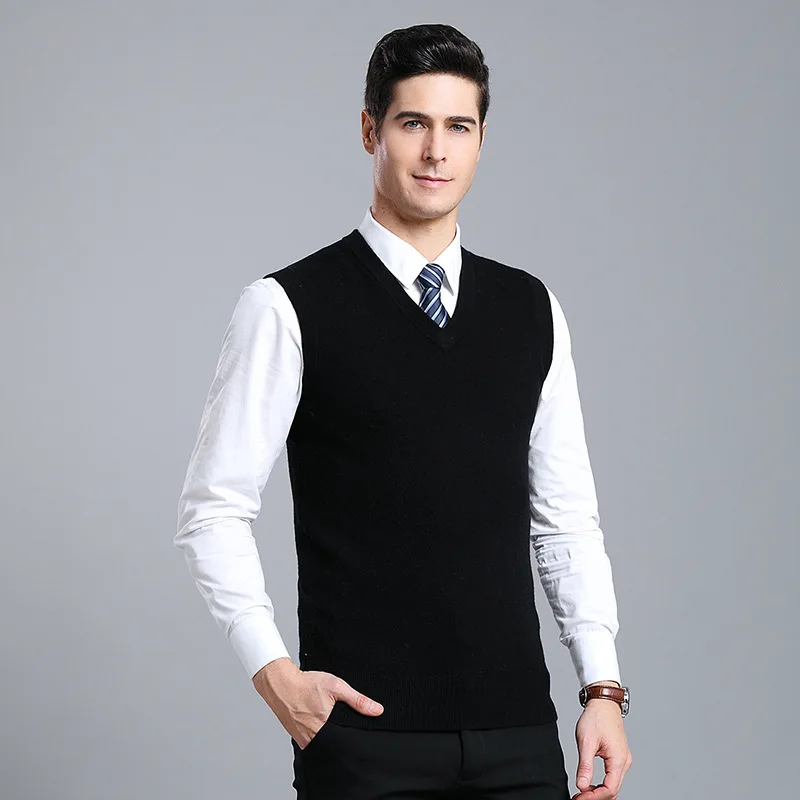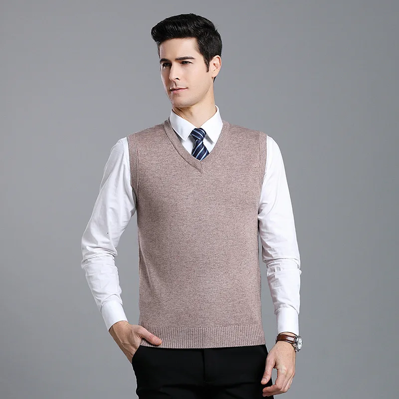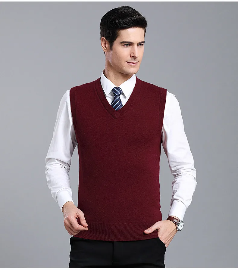 Men's 6.5% Wool knitwear Solid Multi-colors Vest V-neck Slim Waistcoat men Soft Lightweight Pullove